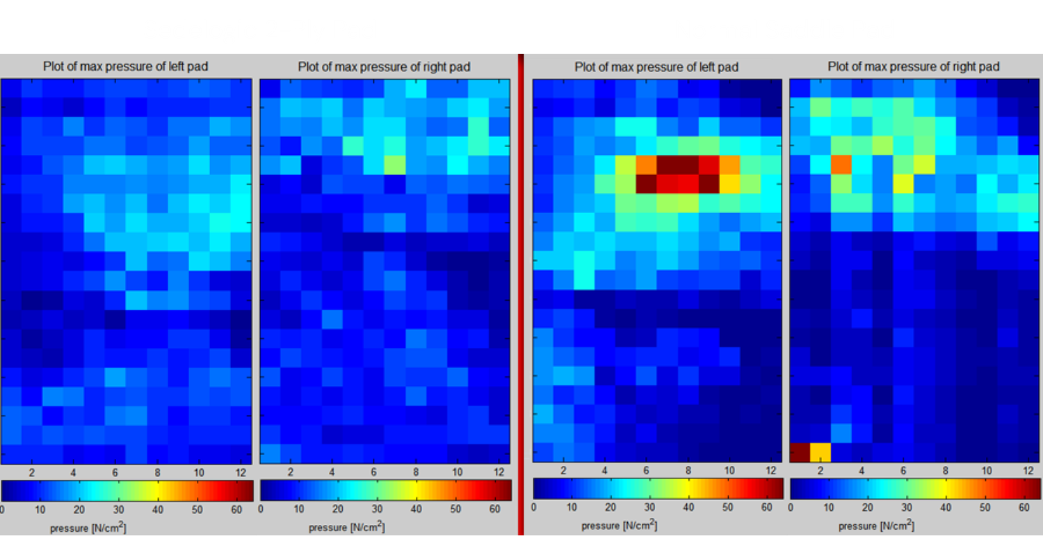 These images shows the measurement of pressure underneath the front of the saddle after a 120 cm jump.